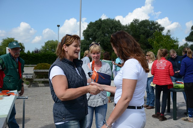 Net als vorig jaar pakte Eva van Rijn het clubkampioenschap op de onderlinge wedstrijd. Zij zette twee prachtige proeven neer en de jury roemde haar samenspel met haar paard. Het ultieme voorbeeld van een happy atlete werd Cato genoemd! De foto’s van de huldiging komen eerdaags op deze site!